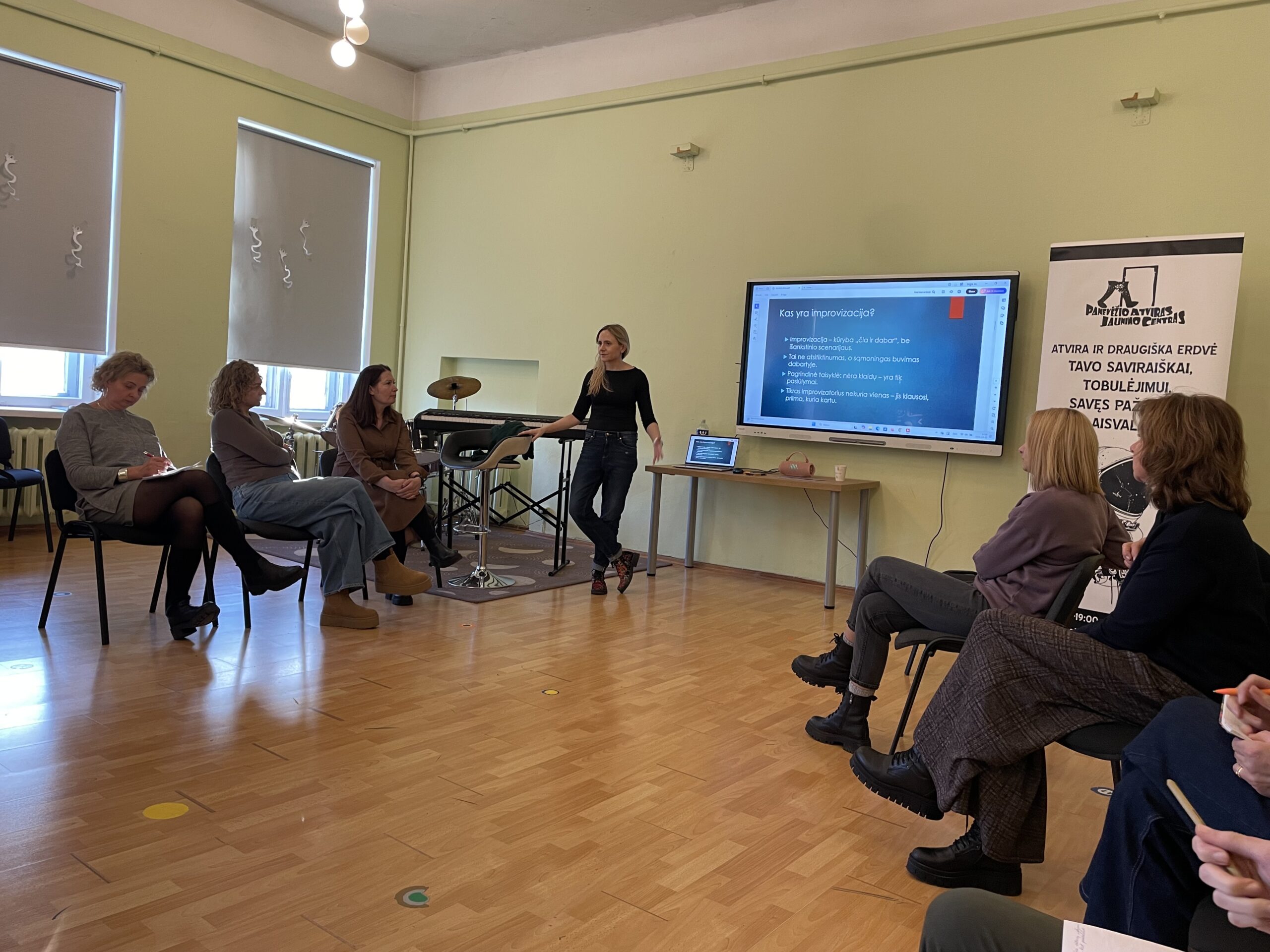 Antroje dienos dalyje teatrinės improvizacijos principai „Taip, ir…“ atvėrė dar vieną svarbų sluoksnį – leidimą sau klysti ir nežinoti. Šie pratimai padėjo ne tik generuoti idėjas ar lavinti komunikaciją, bet ir kurti saugią atmosferą, kurioje nereikia būti „teisingam“ ar „pakankamam“.